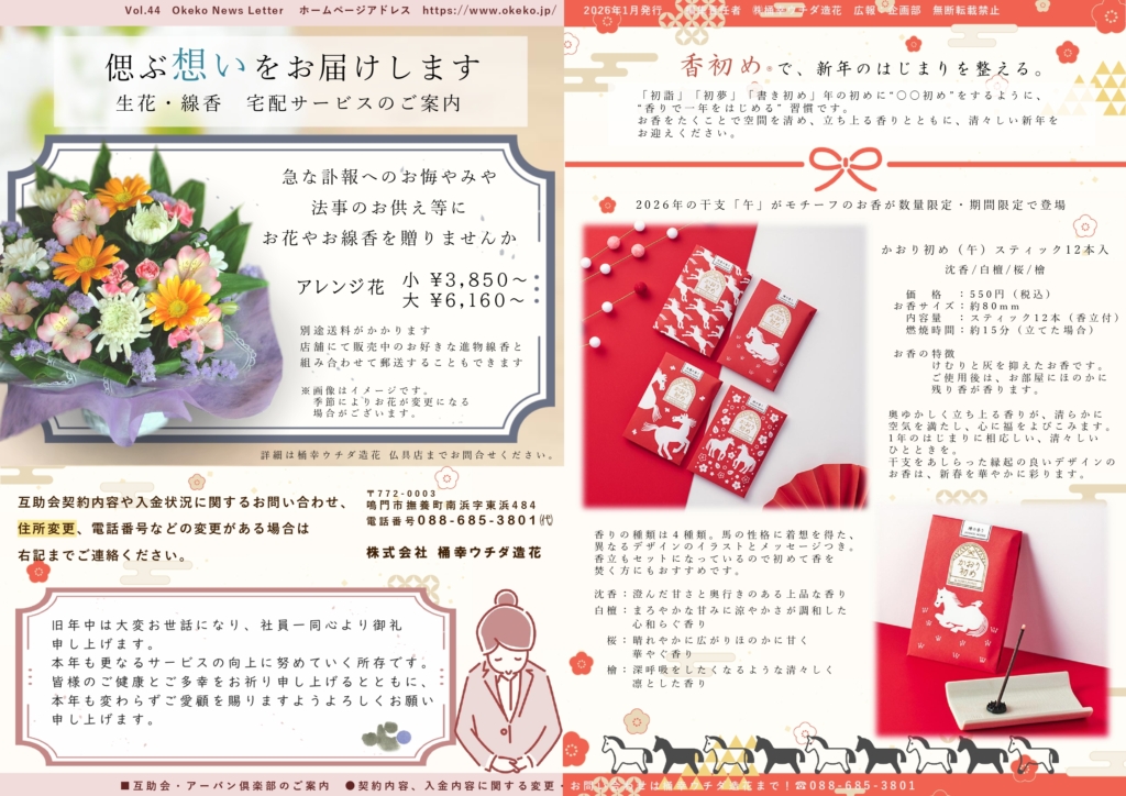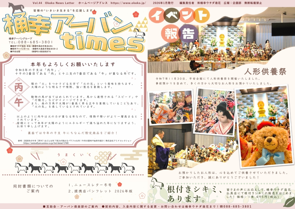 11/30に開催いたしました人形供養祭のご報告や生花・線香の配達サービスの案内も掲載いたしております。