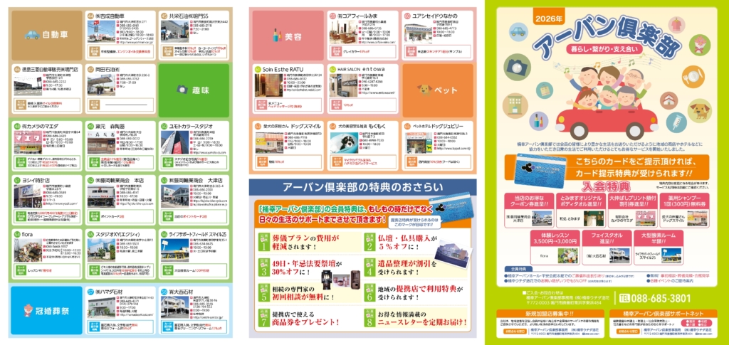 2026年度版提携店パンフレットのご案内 2026年1月27日 2026年度版桶幸アーバン倶楽部提携店パンフレットが完成いたしました。 ぜひこの機会にご覧くださいませ。 桶幸アーバングループではアーバン俱楽部へのご入会・提携店へのご加入も随時承っております。 ご質問等ございましたら、いつでもお問い合わせくださいませ。